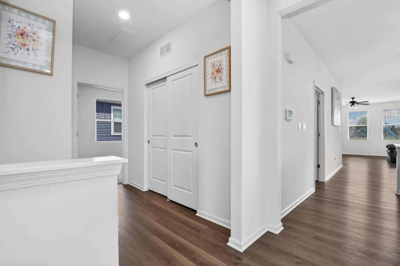 Welcome to this beautiful, newer construction home! Built in 2024, this spacious 3-bedroom, 2-bath residence features nearly 2,000 square feet of living. Situated on a premium lot with no homes behind, this property provides privacy and serene open views, with a park just beyond the backyard. Inside, the home showcases a bright and open layout, filling the space with abundant natural light throughout the day. The inviting living and dining areas flow seamlessly into a stylish kitchen complete with granite countertops, a large island, stainless steel appliances, pantry closet, and an upgraded darker cabinetry finish. Additional enhancements include cabinet hardware throughout, modern light fixtures above the island and dining area, and a ceiling fan in the main living space. The primary suite offers a spacious retreat with a walk-in closet and a well-appointed en-suite bath featuring a double sink vanity, separate shower, and upgraded shower heads. Two additional bedrooms provide flexibility for guests, family, or a home office. Wood laminate flooring extends throughout the main living areas, complemented by built-in features and quality finishes. The HOA provides added convenience by including lawn care and snow removal, allowing for low-maintenance living year-round. This home combines modern design, thoughtful upgrades, and an unbeatable setting-offering comfort, convenience, and privacy all in one exceptional property.
