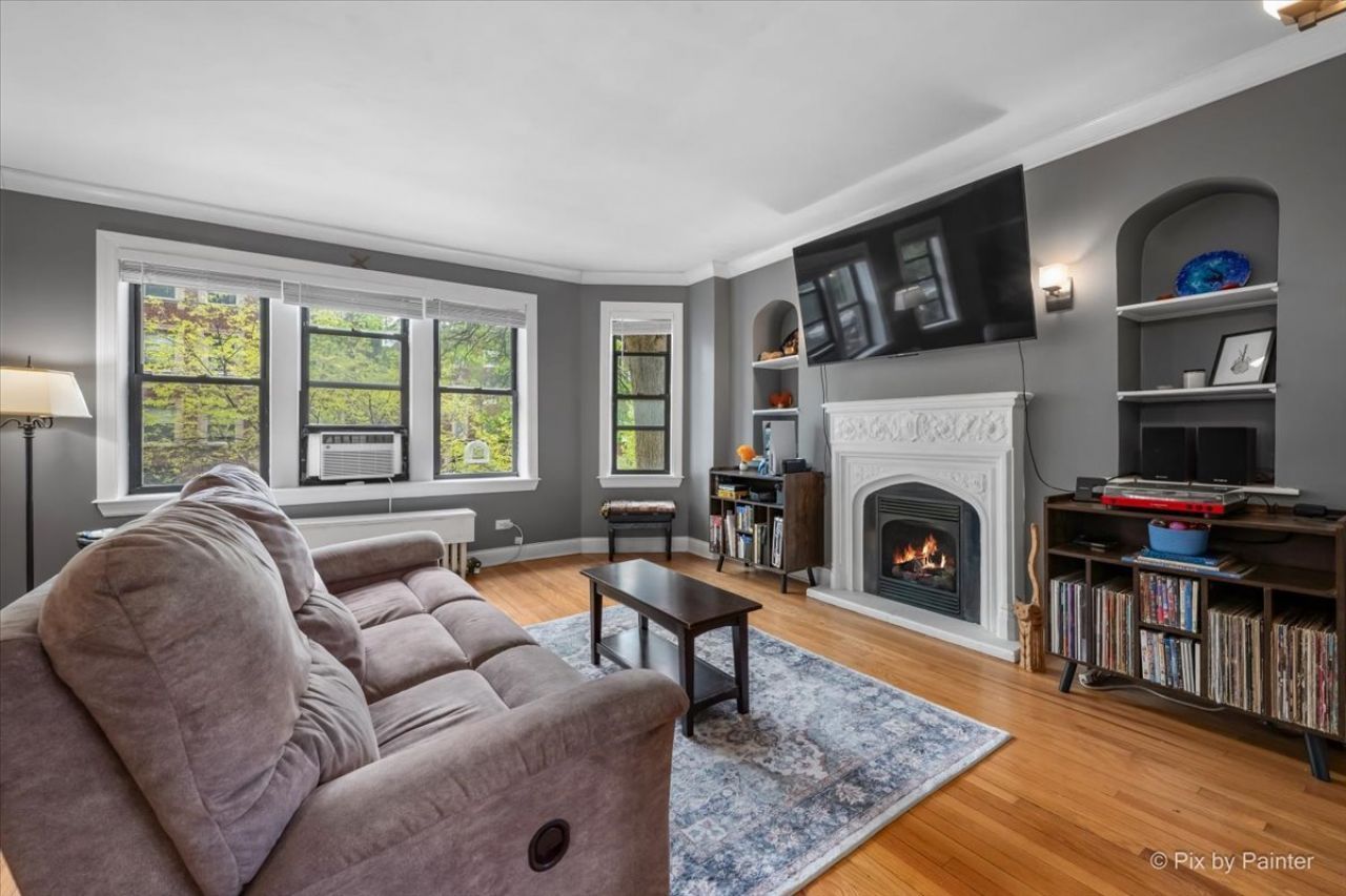 Charming and spacious vintage home set within a beautifully maintained courtyard building. A short set of stairs leads to this inviting first-floor residence, where classic character and thoughtful updates come together seamlessly. The expansive south-facing living room is filled with natural light and showcases a gas fireplace with a stunning mantel, original hardwood floors, elegant archways, and timeless built-ins. The layout flows effortlessly into a generous, separate dining room perfect for everyday living and easy entertaining. The kitchen sits just off the dining space and is equipped with stainless steel appliances, including a double oven, gas range, and a large refrigerator. Both bedrooms offer excellent storage with ELFA-organized closets, and the home continues to impress with its sense of space, natural light from abundant windows, and a layout that lives comfortably without shared walls. Additional features include in-unit washer and dryer and window A/C units (all replaced within the last two years). The bathtub was refinished in February 2026. Located on a quiet, tree-lined street just 1.5 blocks from the Red Line and a short walk to the lakefront, beaches, and parks. Convenient rental parking is available nearby. A wonderful opportunity to enjoy vintage charm, generous space, and an unbeatable location.