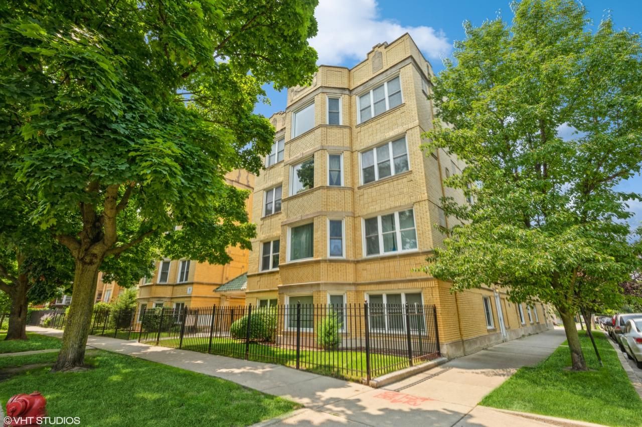 HUGE UPDATED top floor unit 9 foot ceilings, in-unit washer/dryer, central AC and heat, and hardwood floors throughout. Just painted and move in ready. Perfect for roommates, bedrooms are on opposite ends of the unit and in addition to the Master bath, there is a second half bath. The Kitchen has a large pantry that could also be used as a very narrow office. Both bedrooms and Living room have tons of windows to allow light in and showcase great treeline views. There is also a storage unit in the basement and zoned street parking or leased parking 2 blocks away at Brown line 3389 W Lawrence for $150. No rental cap. Reserves $53,000. Rooms are staged to show furniture options.