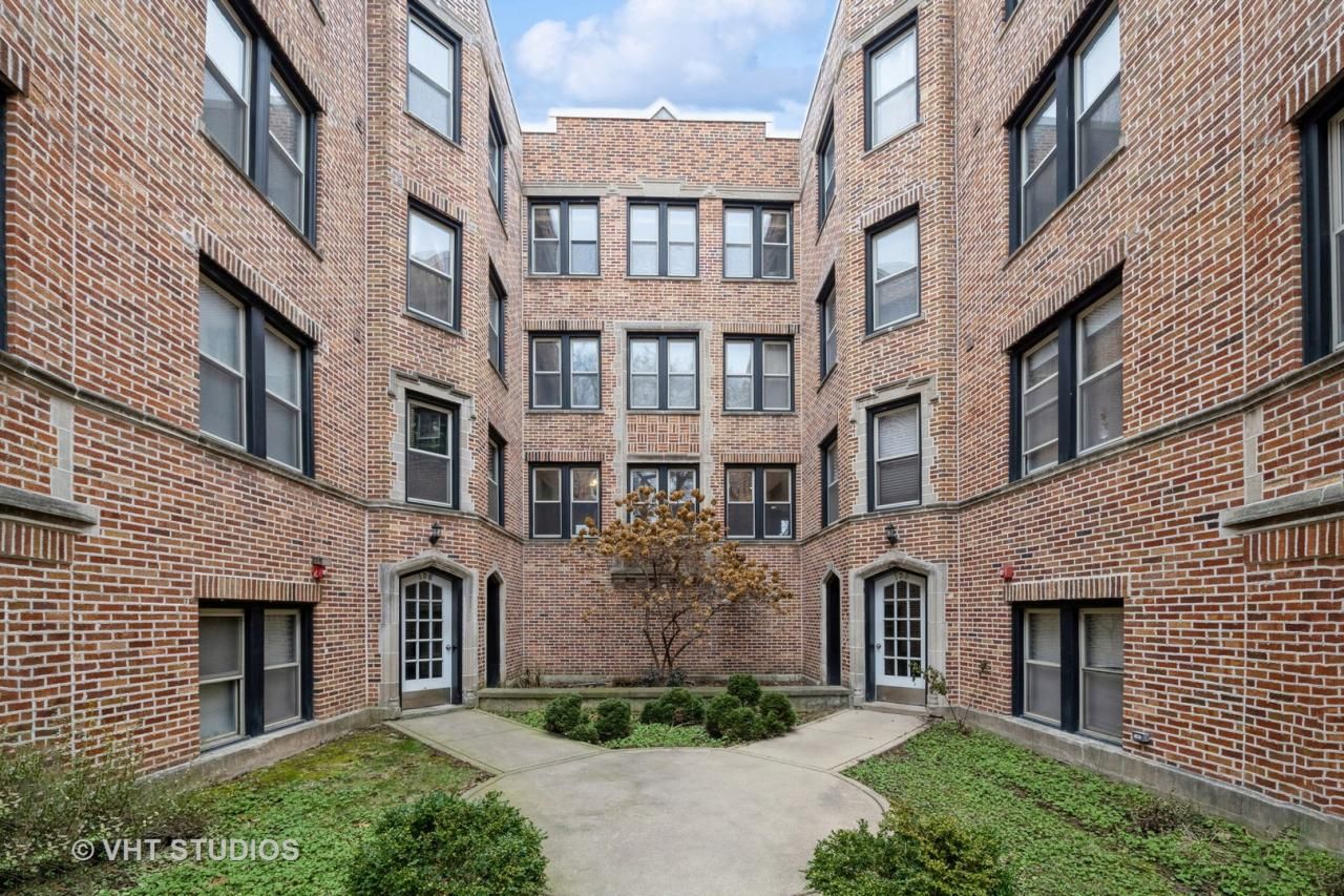 2 bed 1 bath with PRIVATE GARAGE PARKING and additional storage in basement. HARDWOOD FLOORS were just refinished, stained, and sealed and the entire unit was just painted. EXPOSED BRICK and Huge Living/DIning Room overlook the front courtyard. IN UNIT LAUNDRY, CENTRAL AC AND FORCED GAS HEAT. Great location! Rogers Park and Main Street train 8 blocks away. Juneway, Fargo, Jarvis, and Evanston south beach 7 blocks away. Jewel 3 blocks, Wild Fork 8 blocks Trader Joe's 1.2 miles. Esport Gym 2 blocks away. reserves are $26,000, no planned specials, roof was a complete replacement and deck repairs about 5 years ago, rentals only if board approved, no pet restrictions, hardwood floors just refinished and stained and the entire unit repainted.